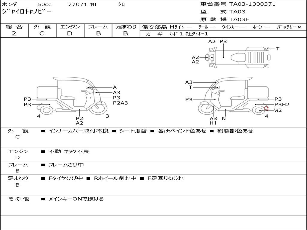| Номер рамы / VIN | TA03-1000371 |