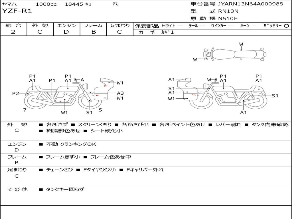 | Номер рамы / VIN | JYARN13N64A000988 |