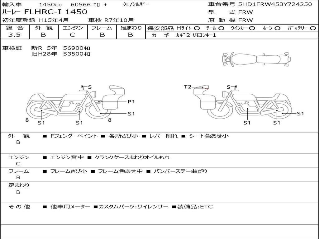 | Номер рамы / VIN | 5HD1FRW453Y724250 |