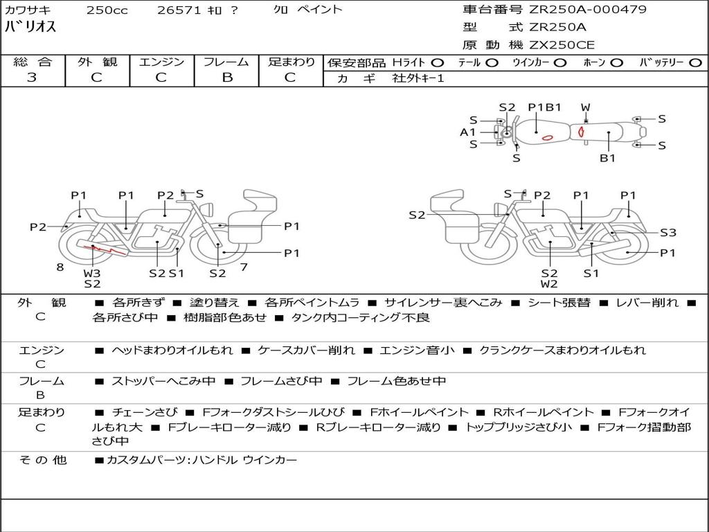 | Номер рамы / VIN | ZR250A-000479 |