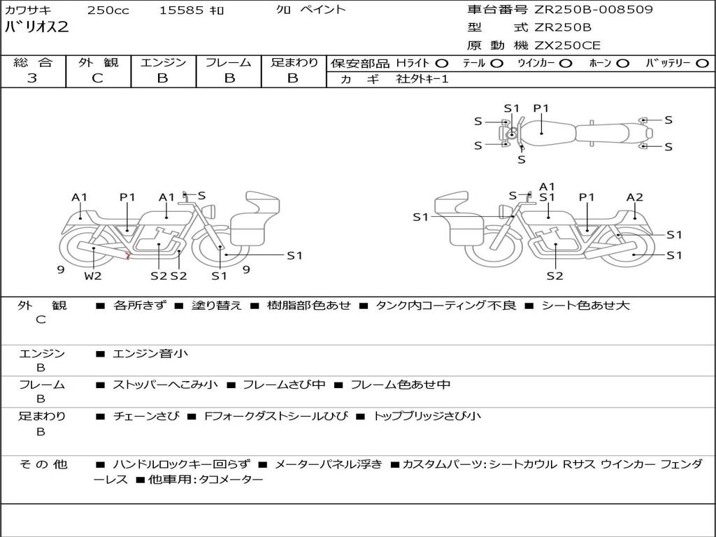| Номер рамы / VIN | ZR250B-008509 |