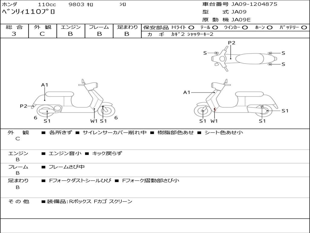 | Номер рамы / VIN | JA09-1204875 |