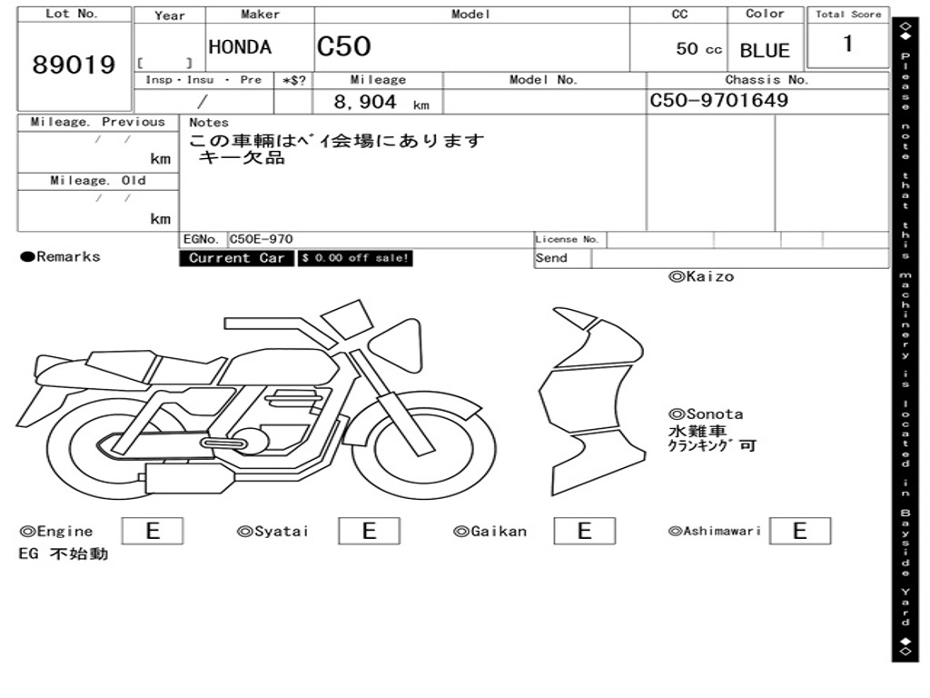 | Номер рамы / VIN | C50-9701649 |