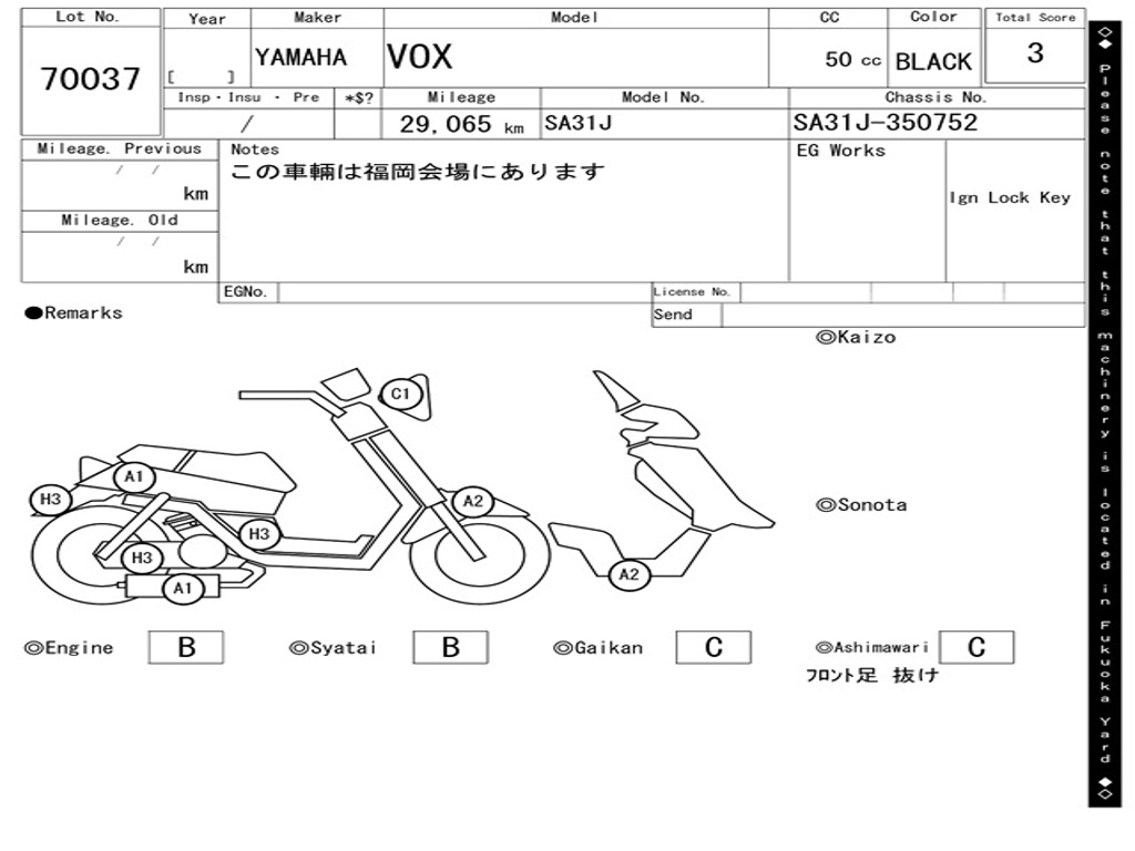 | Номер рамы / VIN | SA31J-350752 |