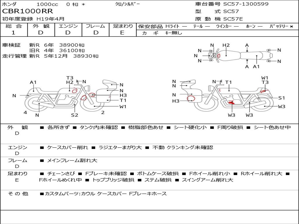 | Номер рамы / VIN | SC57-1300599 |