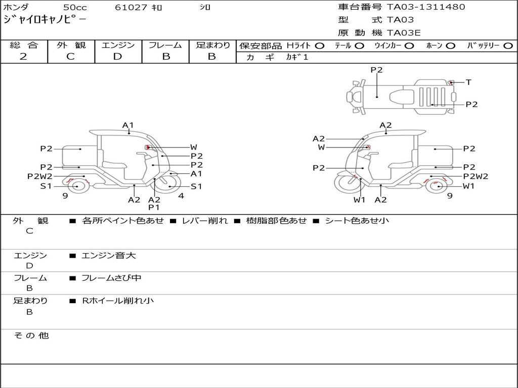 | Номер рамы / VIN | TA03-1311480 |
