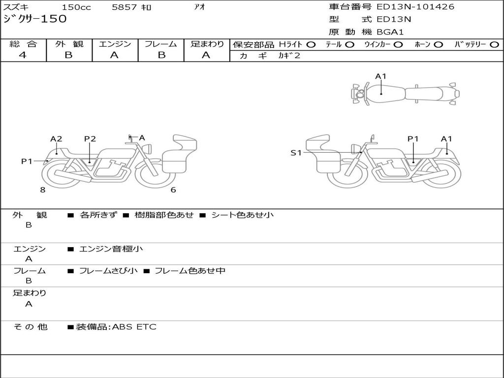 | Номер рамы / VIN | ED13N-101426 |