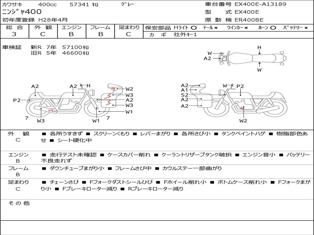 | Номер рамы / VIN | EX400E-A13189 |