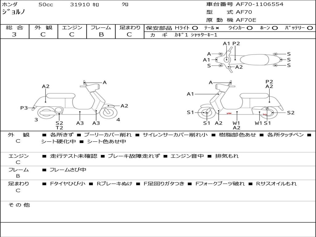 | Номер рамы / VIN | AF70-1106554 |