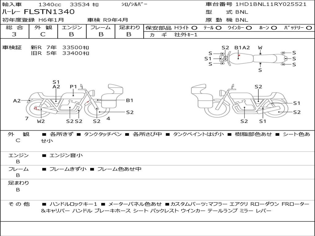 Номер рамы / VIN | 1HD1BNL11RY025521 |