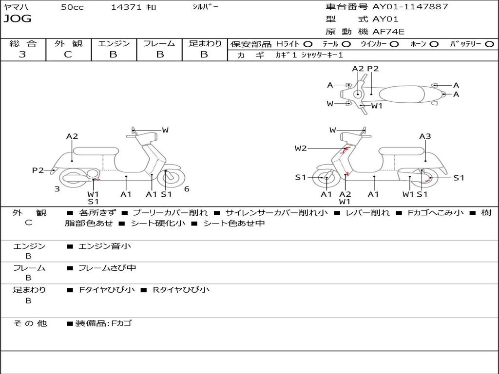 | Номер рамы / VIN | AY01-1147887 |