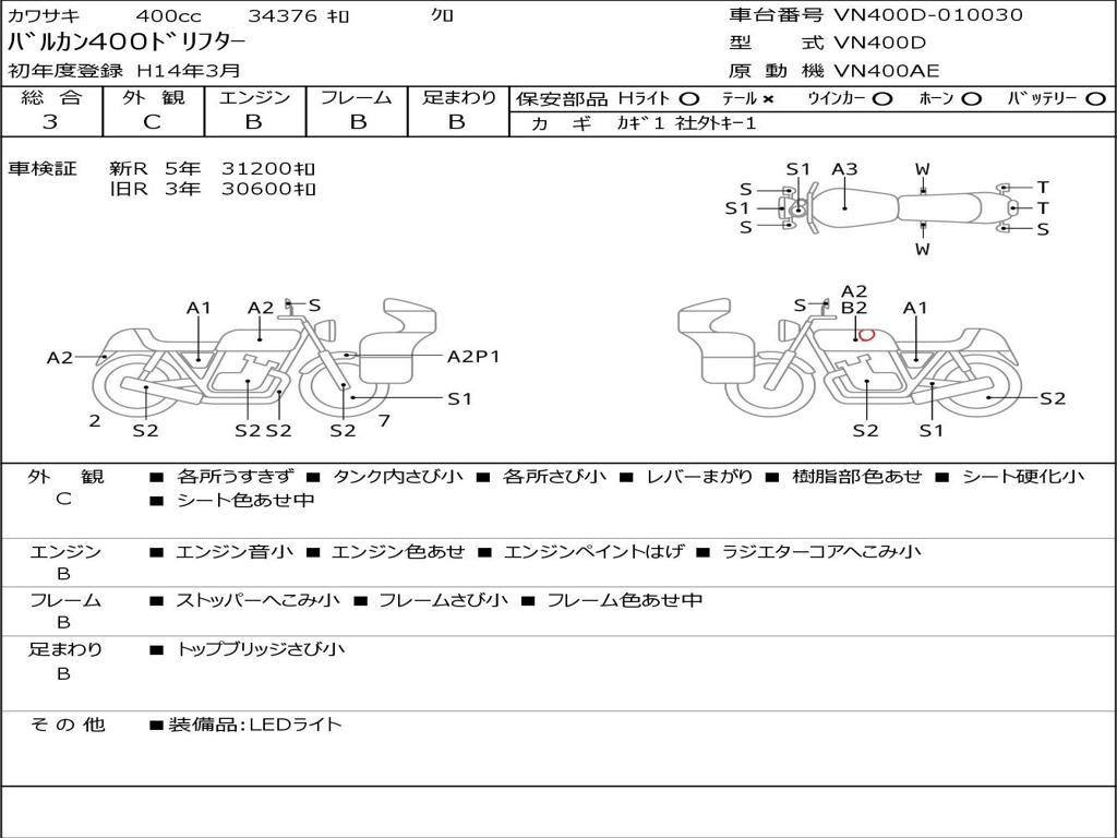 Номер рамы / VIN | VN400D-010030 |