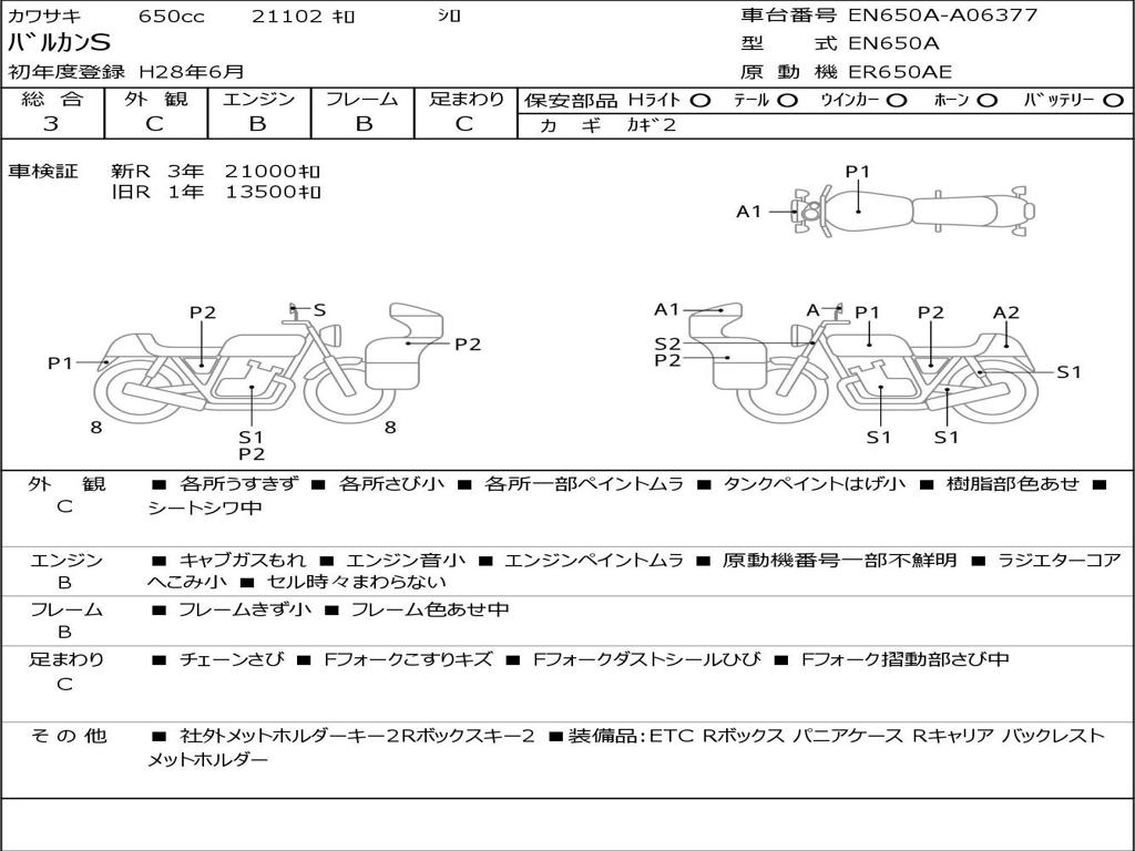 | Номер рамы / VIN | EN650A-A06377 |
