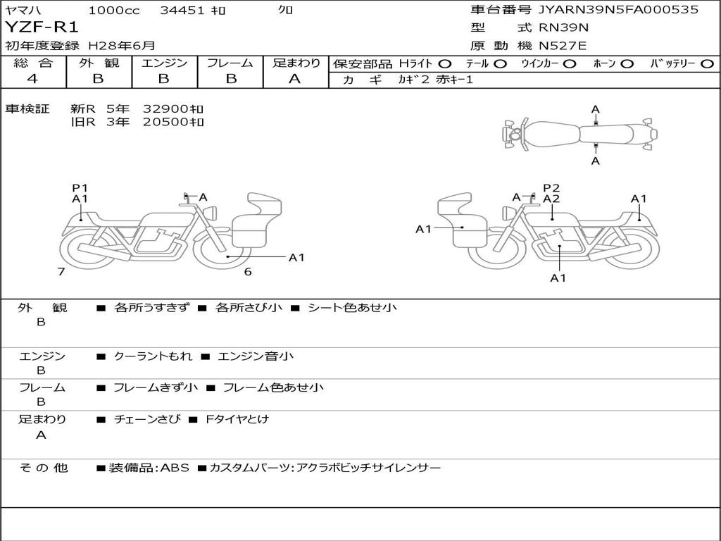 | Номер рамы / VIN | JYARN39N5FA000535 |