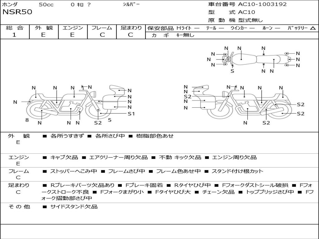 | Номер рамы / VIN | AC10-1003192 |