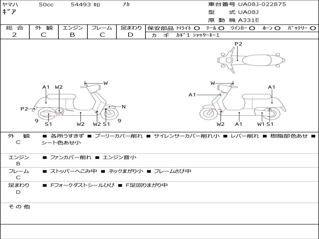 | Номер рамы / VIN | UA08J-022875 |