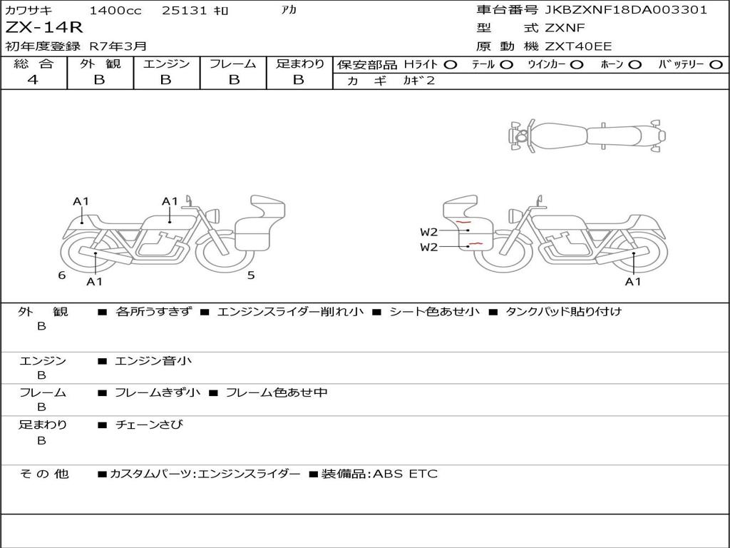 | Номер рамы / VIN | JKBZXNF18DA003301 |