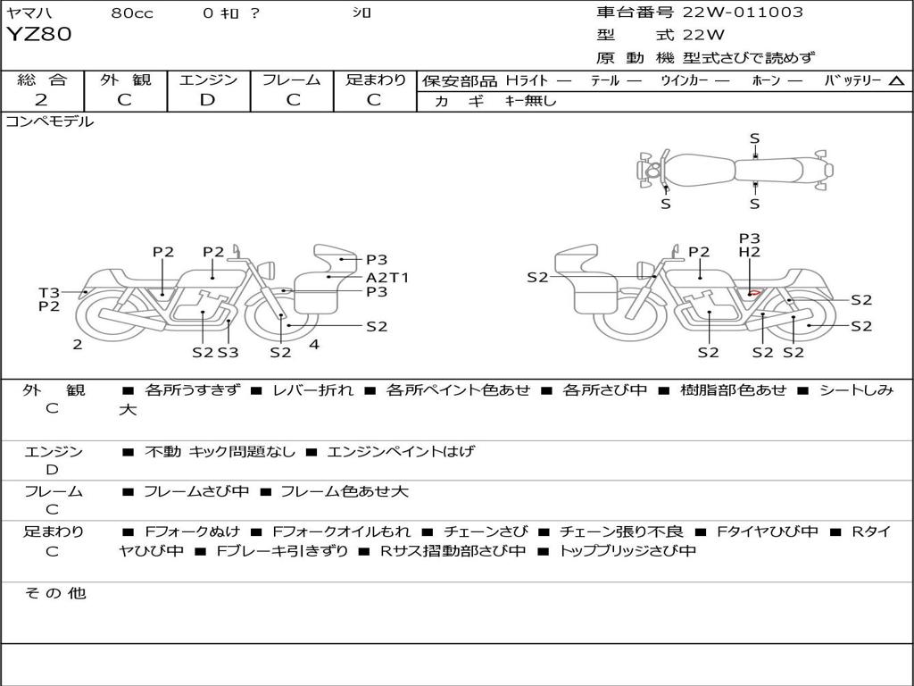 | Номер рамы / VIN | 22W-011003 |