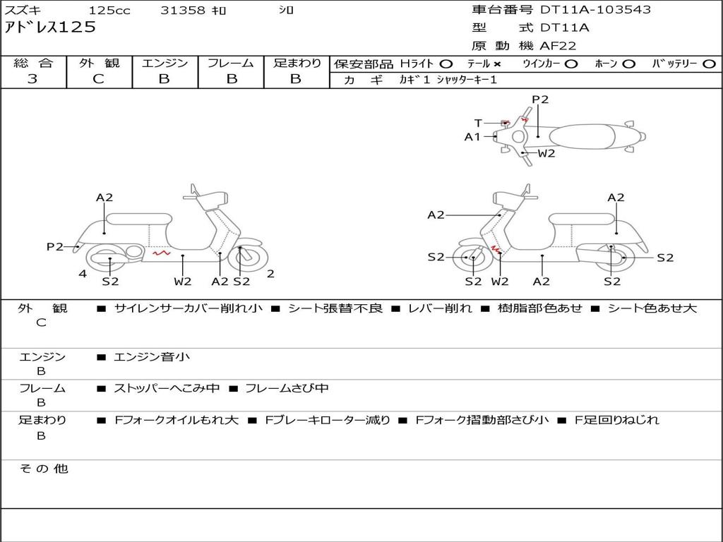 | Номер рамы / VIN | DT11A-103543 |