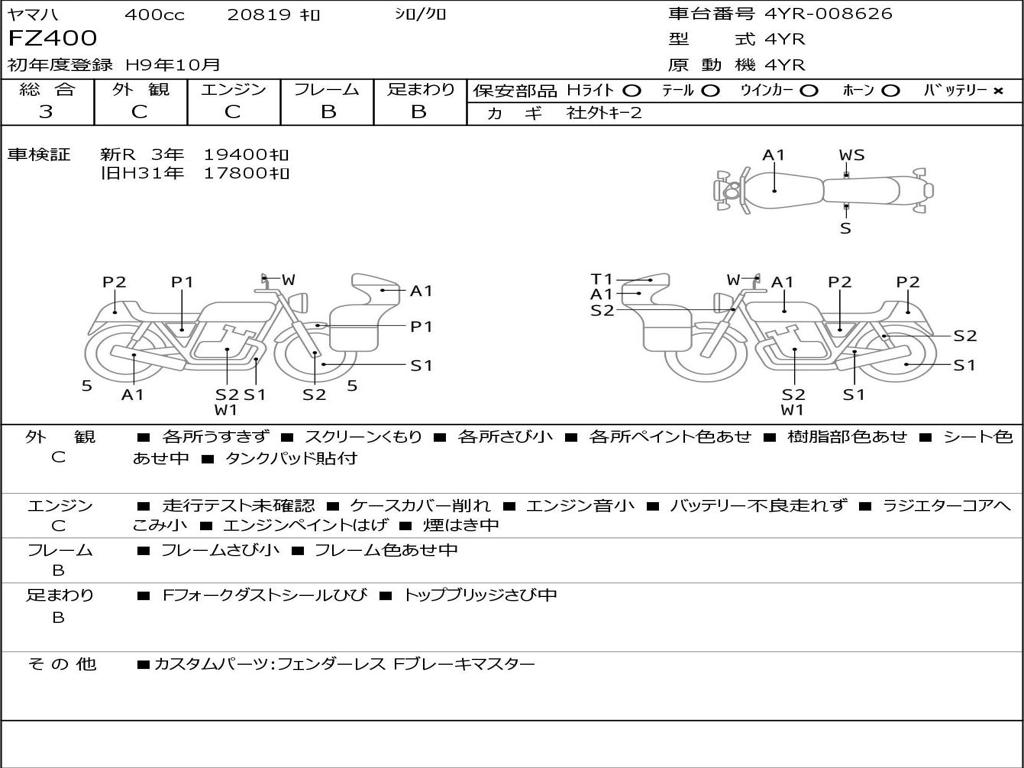 | Номер рамы / VIN | 4YR-008626 |