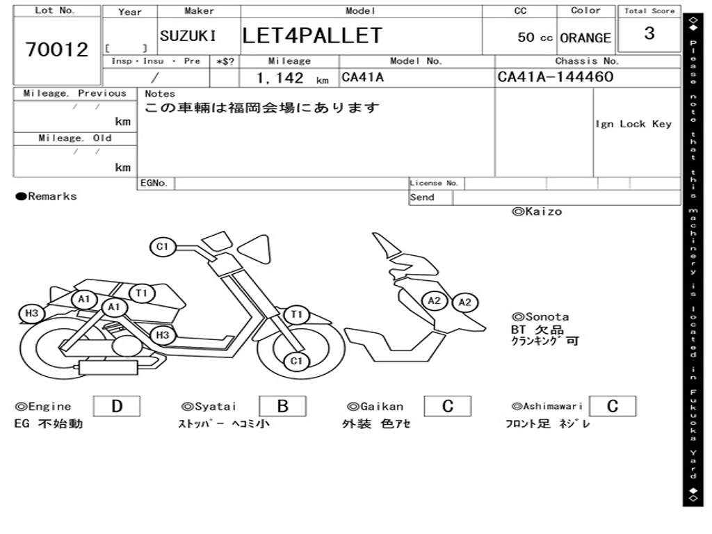 | Номер рамы / VIN | CA41A-144460 |