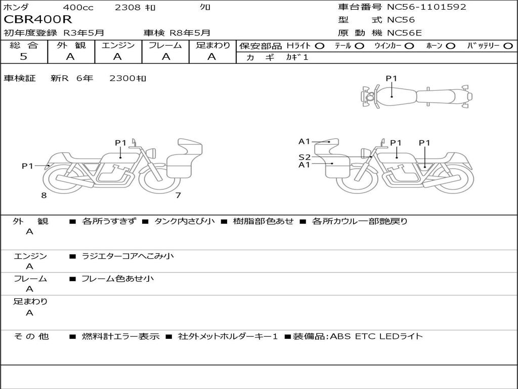 | Номер рамы / VIN | NC56-1101592 |