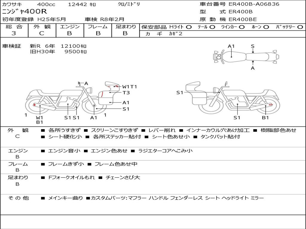 | Номер рамы / VIN | ER400B-A06836 |