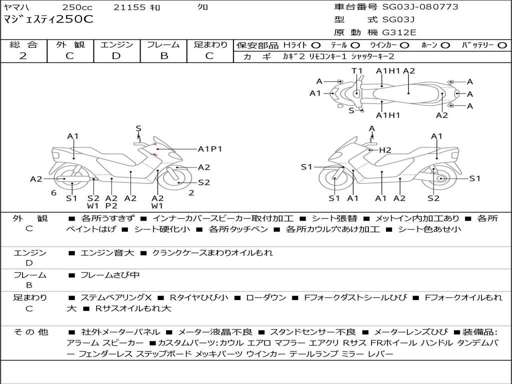 | Номер рамы / VIN | SG03J-080773 |