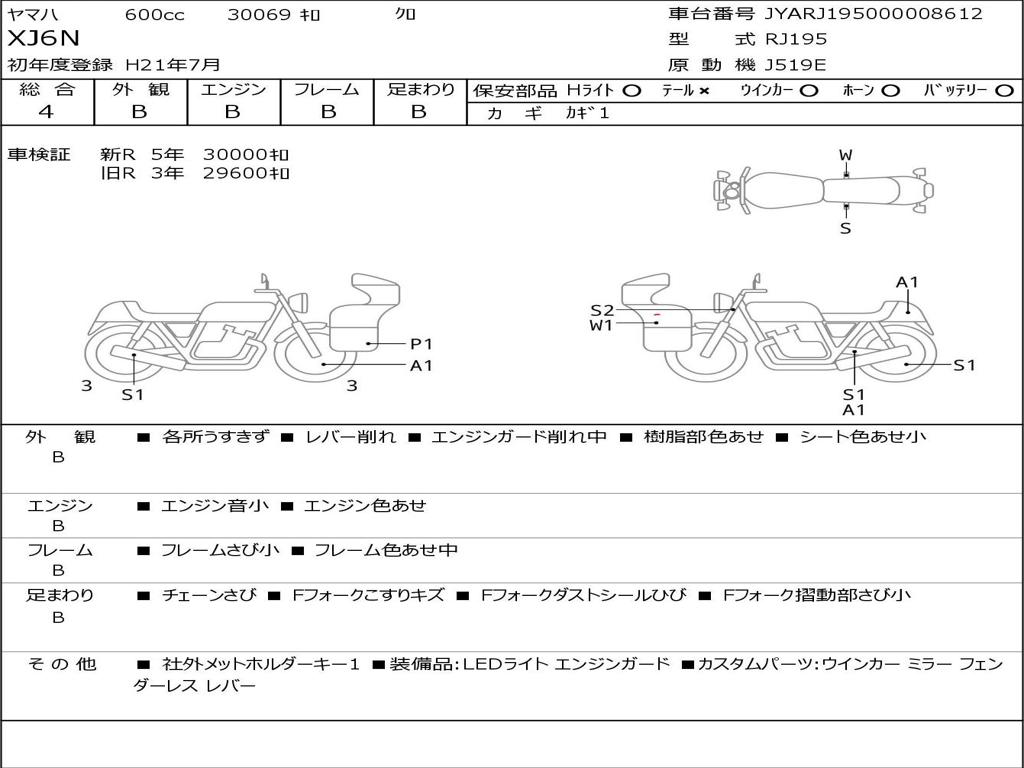 | Номер рамы / VIN | JYARJ195000008612 |
