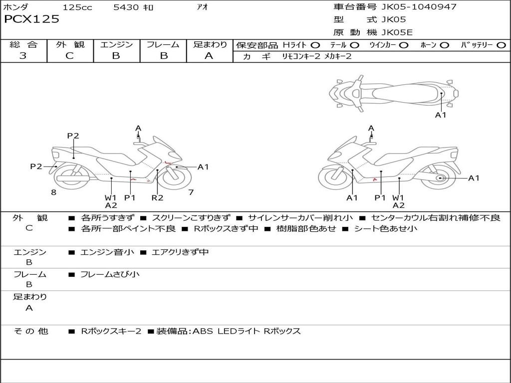 | Номер рамы / VIN | JK05-1040947 |