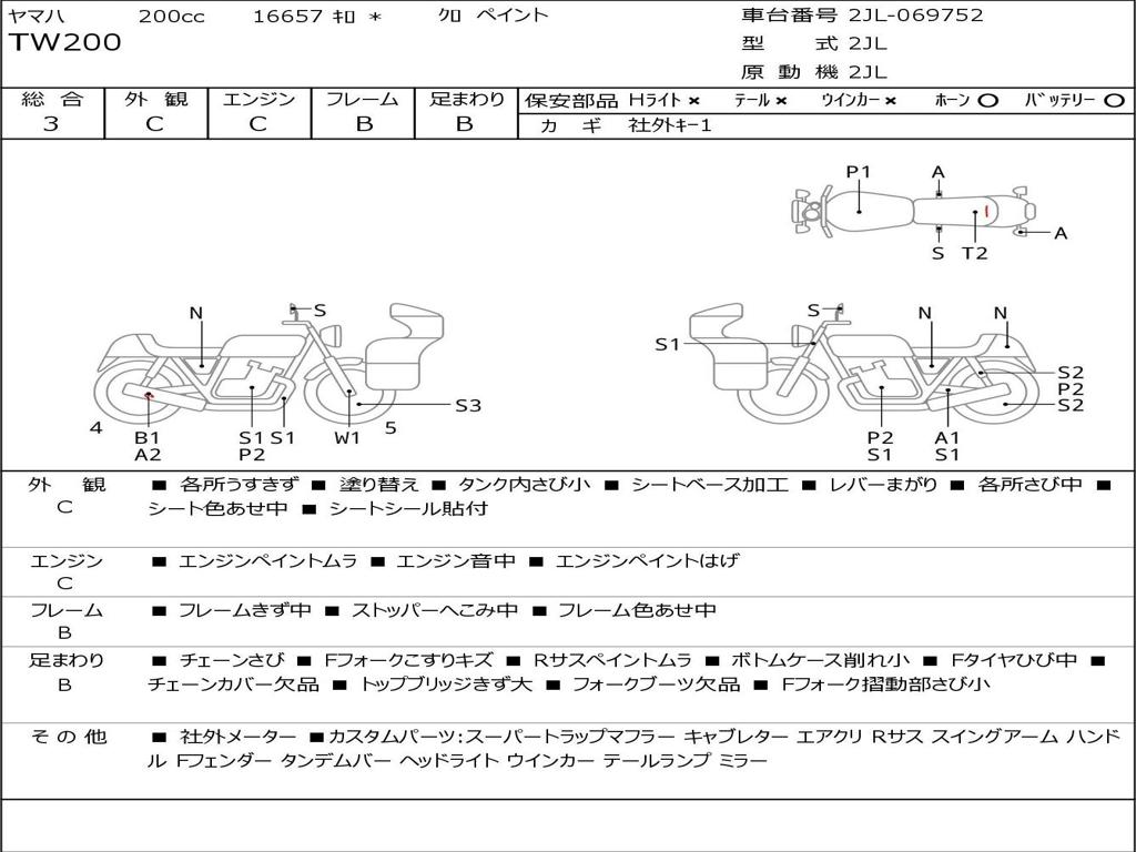 | Номер рамы / VIN | 2JL-069752 |