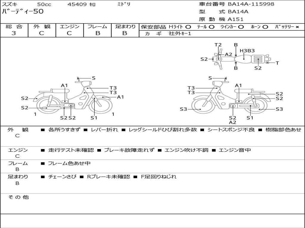 | Номер рамы / VIN | BA14A-115998 |