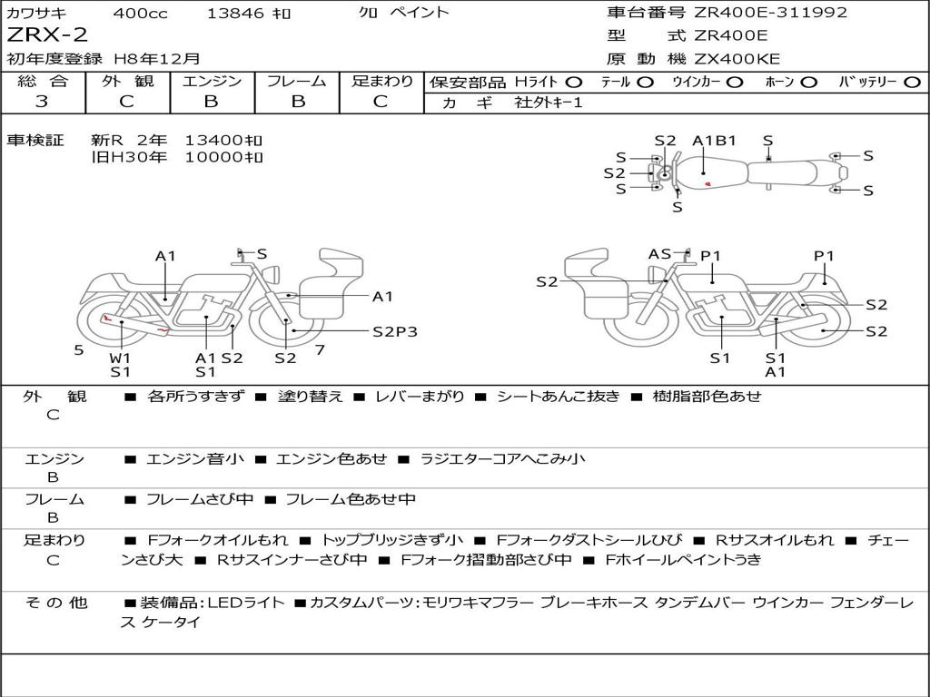| Номер рамы / VIN | ZR400E-311992 |