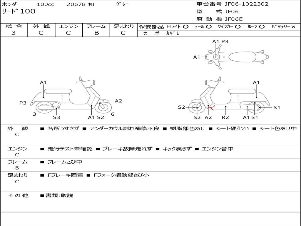 | Номер рамы / VIN | JF06-1022302 |