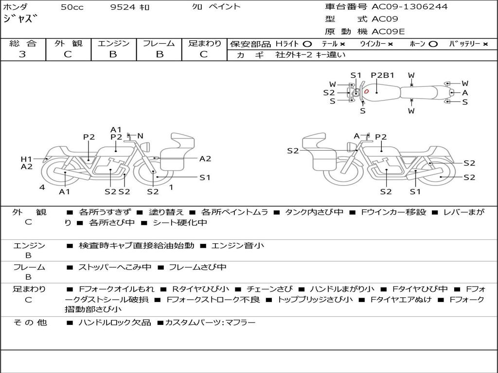 | Номер рамы / VIN | AC09-1306244 |