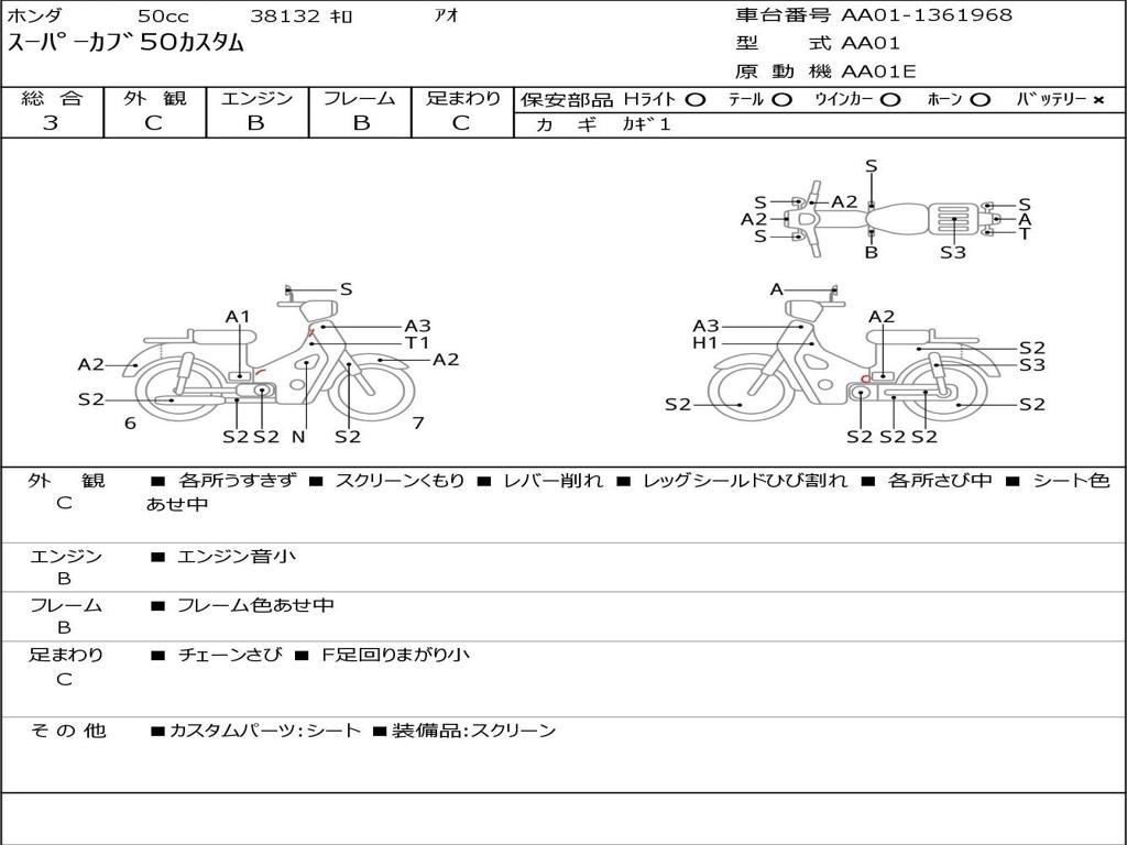 | Номер рамы / VIN | AA01-1361968 |