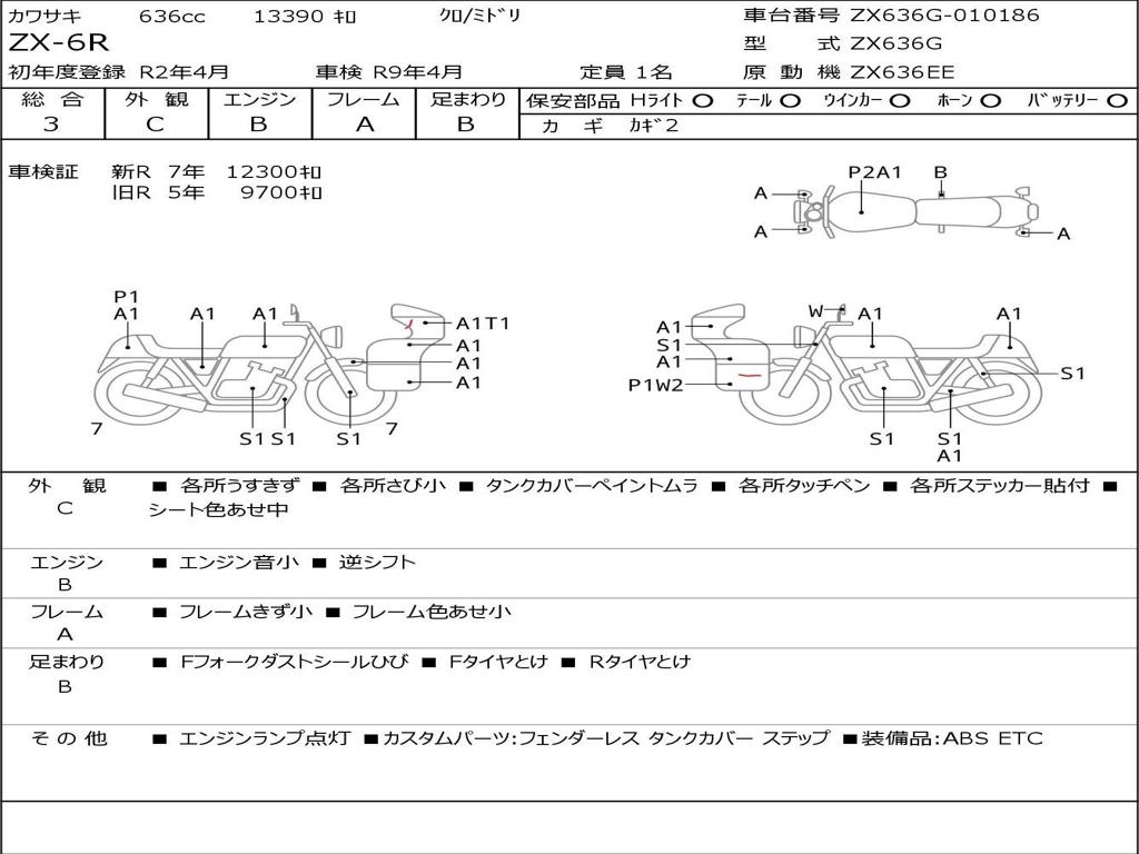 | Номер рамы / VIN | ZX636G-010186 |