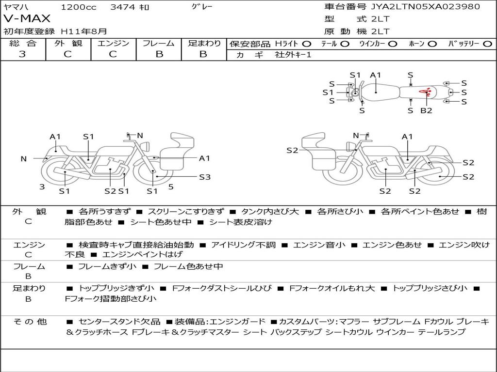 | Номер рамы / VIN | JYA2LTN05XA023980 |