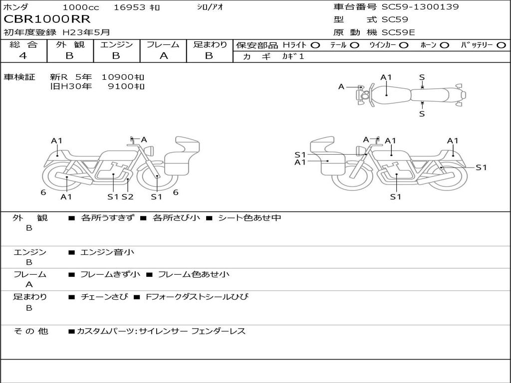 | Номер рамы / VIN | SC59-1300139 |