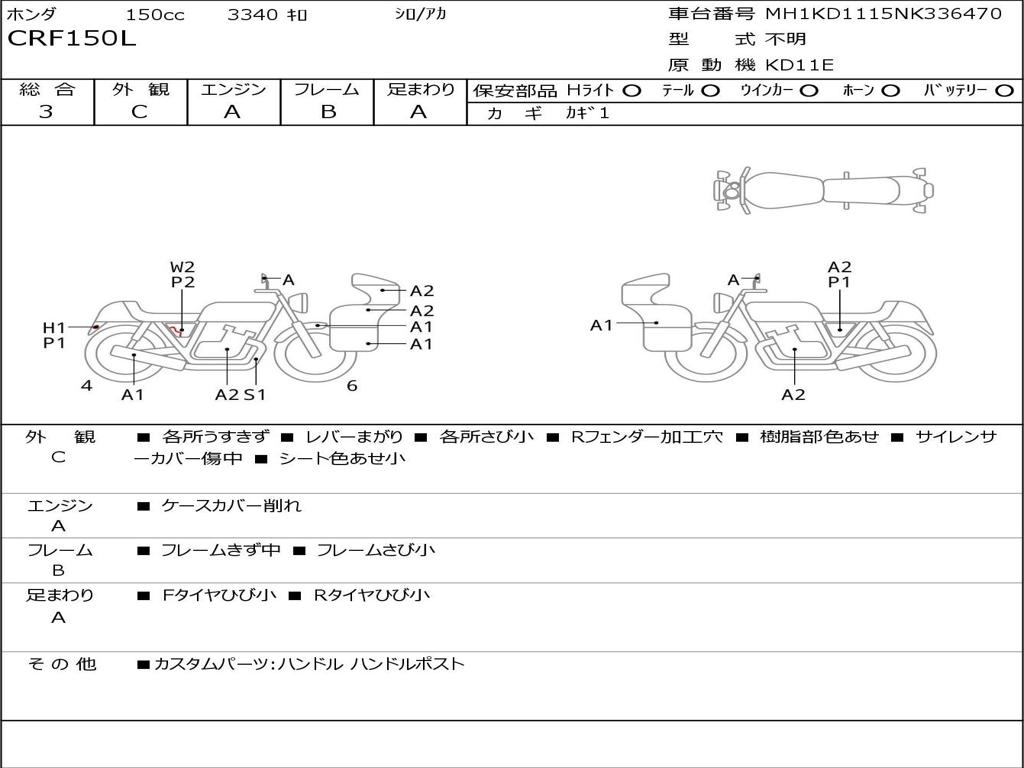 | Номер рамы / VIN | MH1KD1115NK336470 |