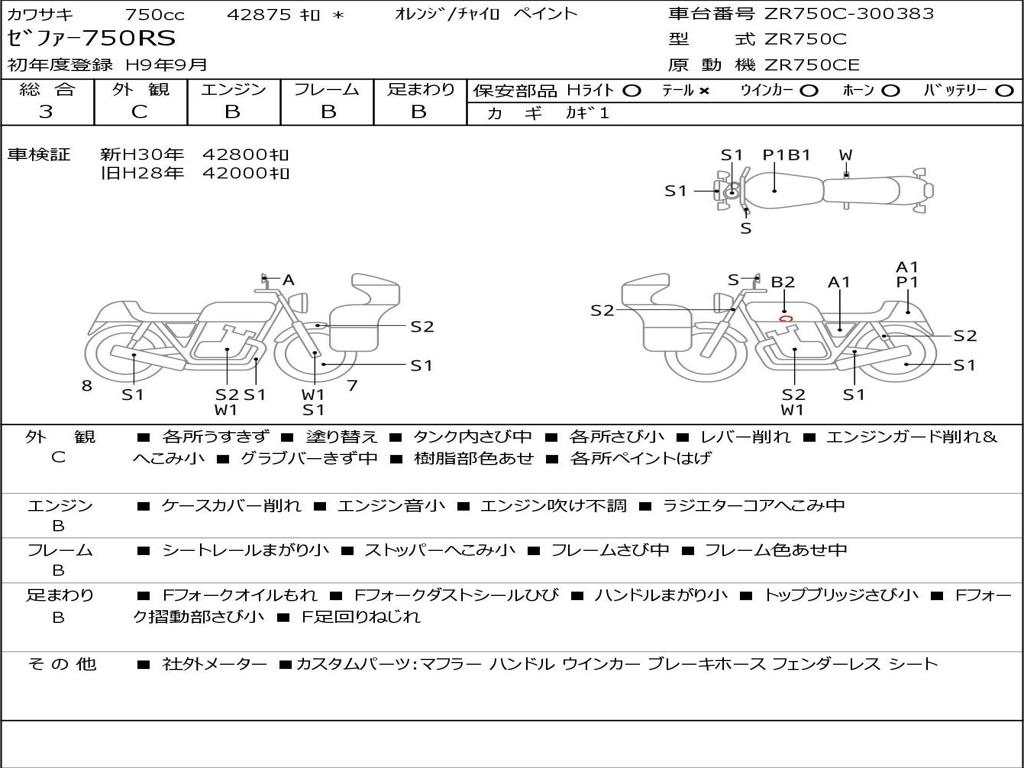 | Номер рамы / VIN | ZR750C-300383 |