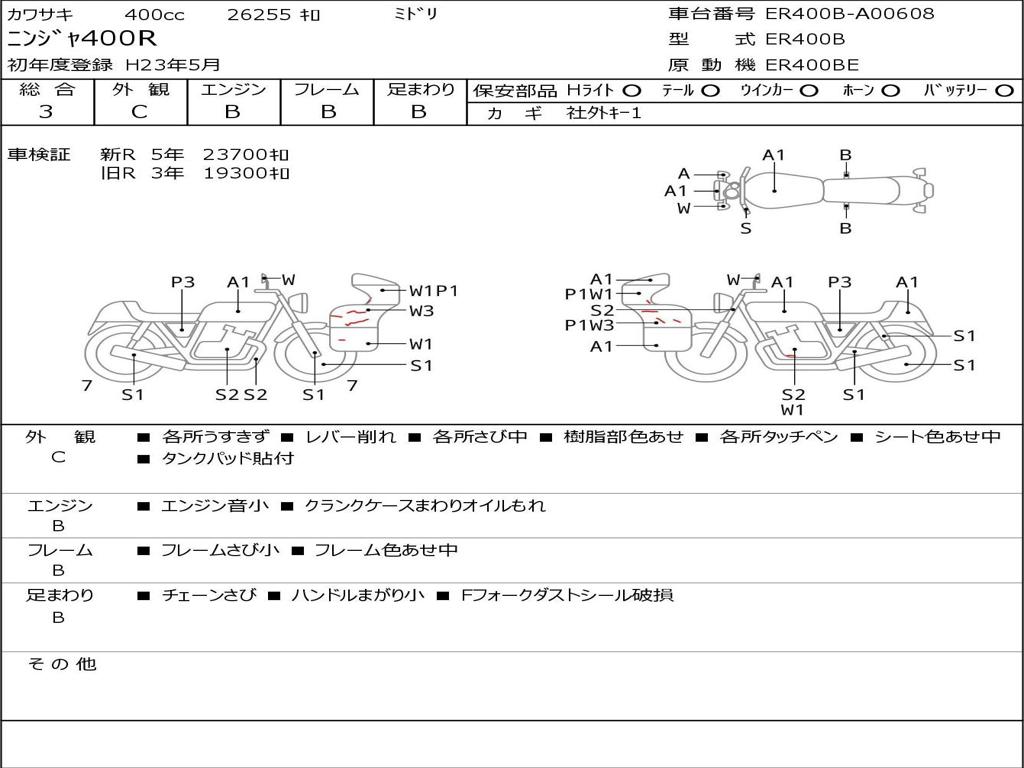 | Номер рамы / VIN | ER400B-A00608 |