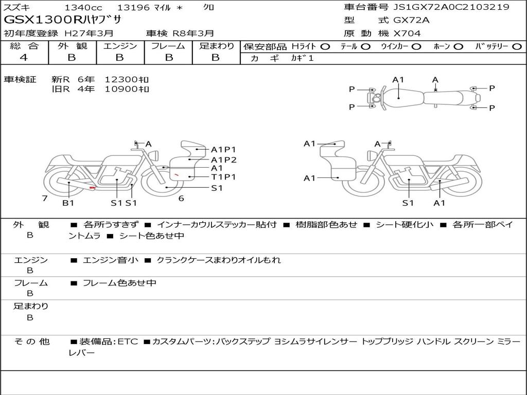 | Номер рамы / VIN | JS1GX72A0C2103219 |