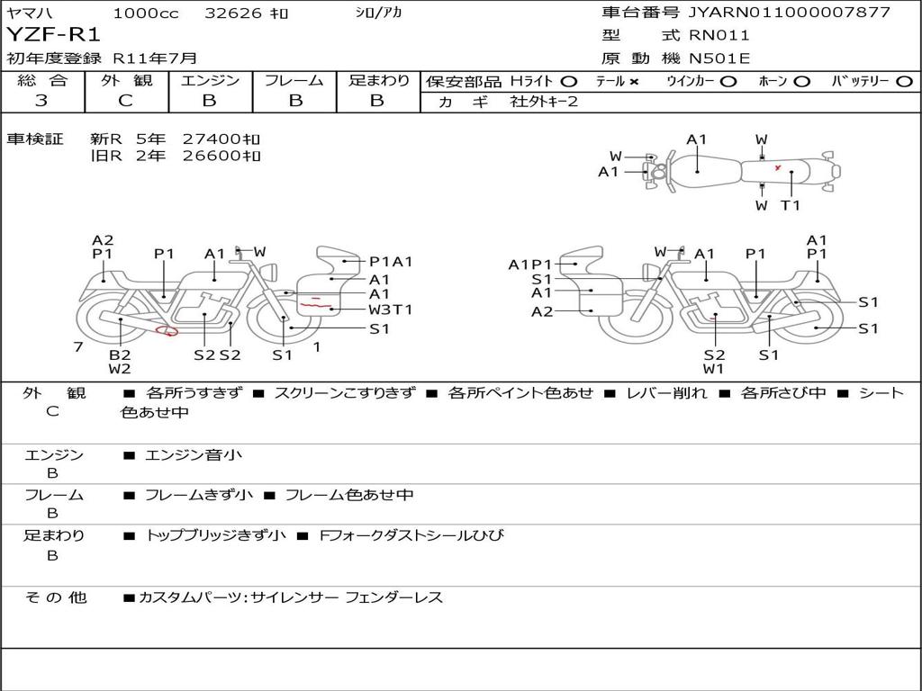 | Номер рамы / VIN | JYARN011000007877 |