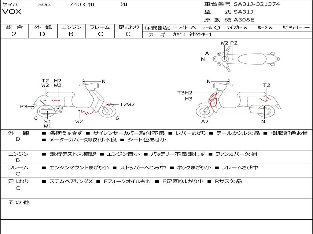 | Номер рамы / VIN | SA31J-321374 |