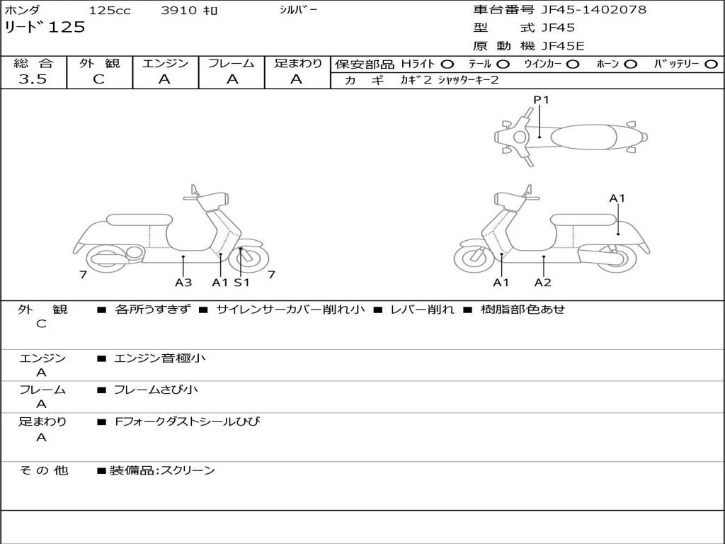 | Номер рамы / VIN | JF45-1402078 |