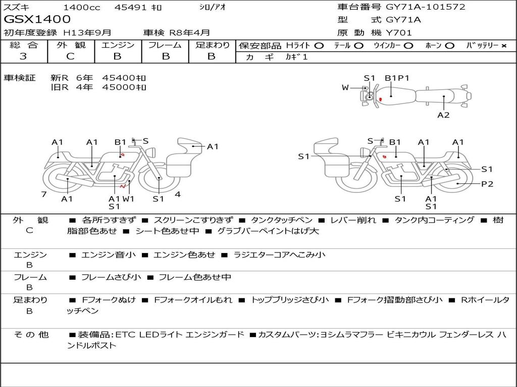 | Номер рамы / VIN | GY71A-101572 |