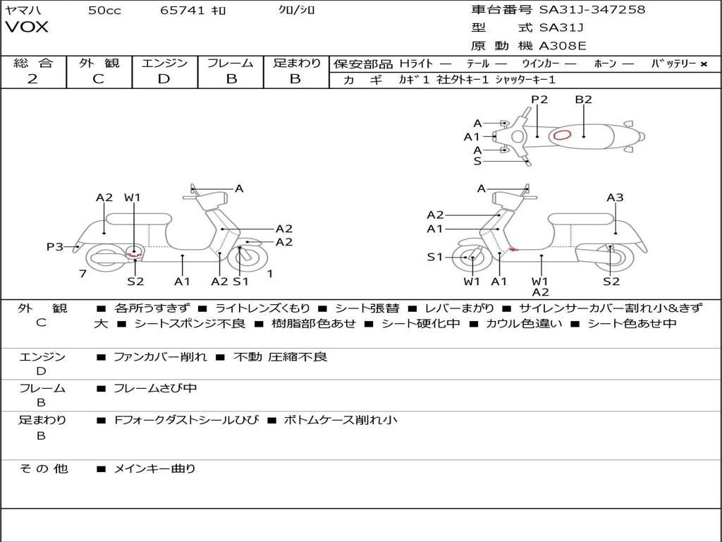 | Номер рамы / VIN | SA31J-347258 |