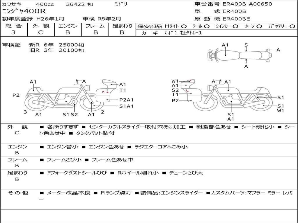 | Номер рамы / VIN | ER400B-A00650 |