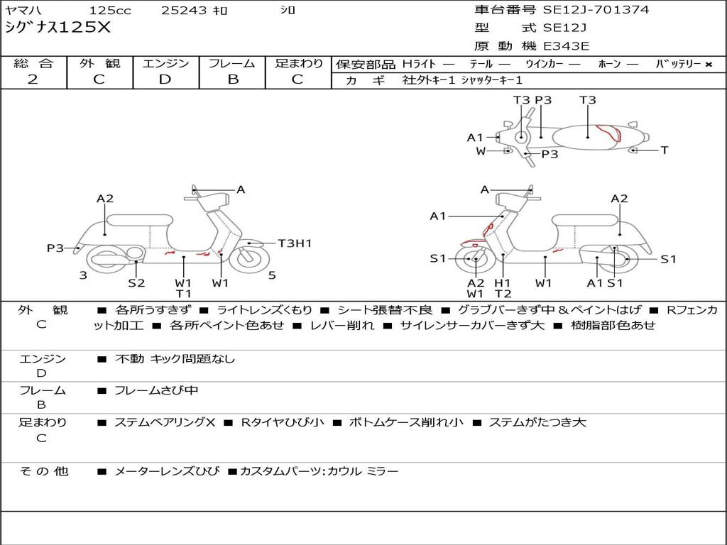 | Номер рамы / VIN | SE12J-701374 |